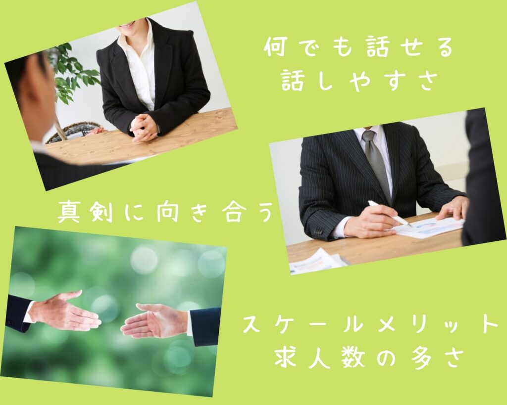 理念に基づいて目の前の求職者に本気で向き合い、丁寧なサポートで内定まで並走してくれる印象が強いです。